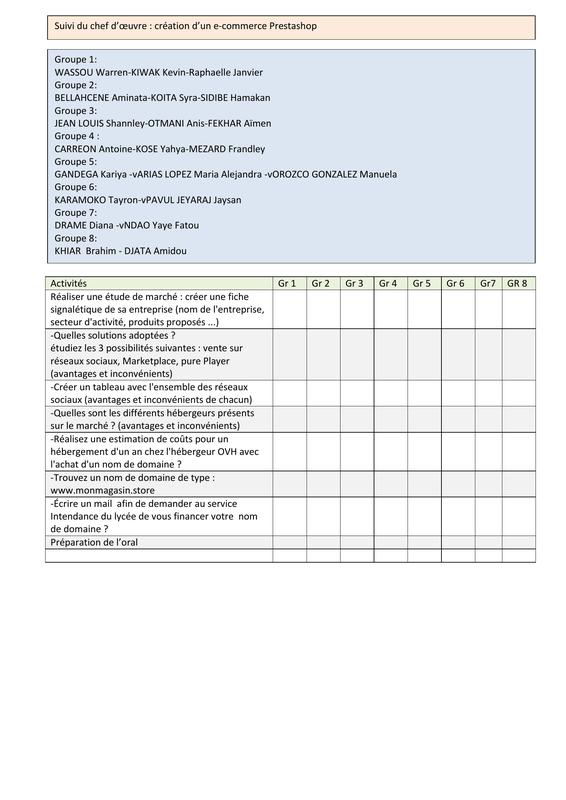 Mois Semaine de formation Chef d’œuvre Septembre S1 Bilan du chef d'oeuvre : note bilan/appréciations : Etat d'avancement des différents groupes. Présentat...
