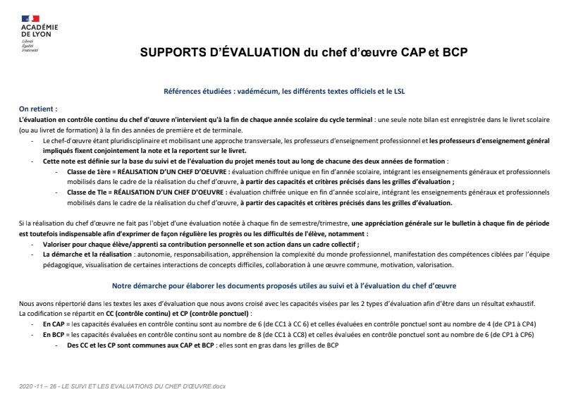 Evaluation Du Chef D'Oeuvre